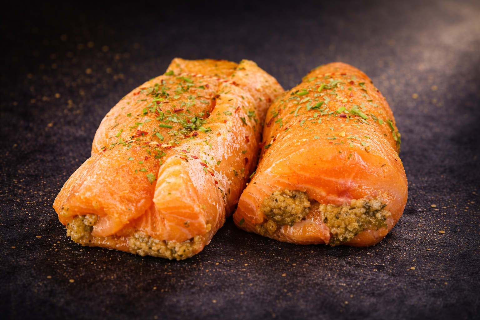 Uit eigen rokerij. Per hele zijde, halve zijde of per stukje verkrijgbaar. Naturel of met citroenpeper