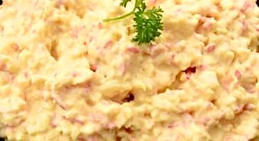 Onze heerlijke vissalade van zalmsalade en gerookte zalm. Lekker op toast of stokbrood. Voldoende voor 4 tot 6 personen.