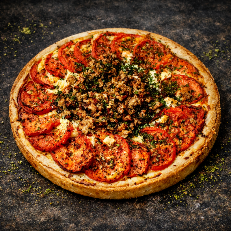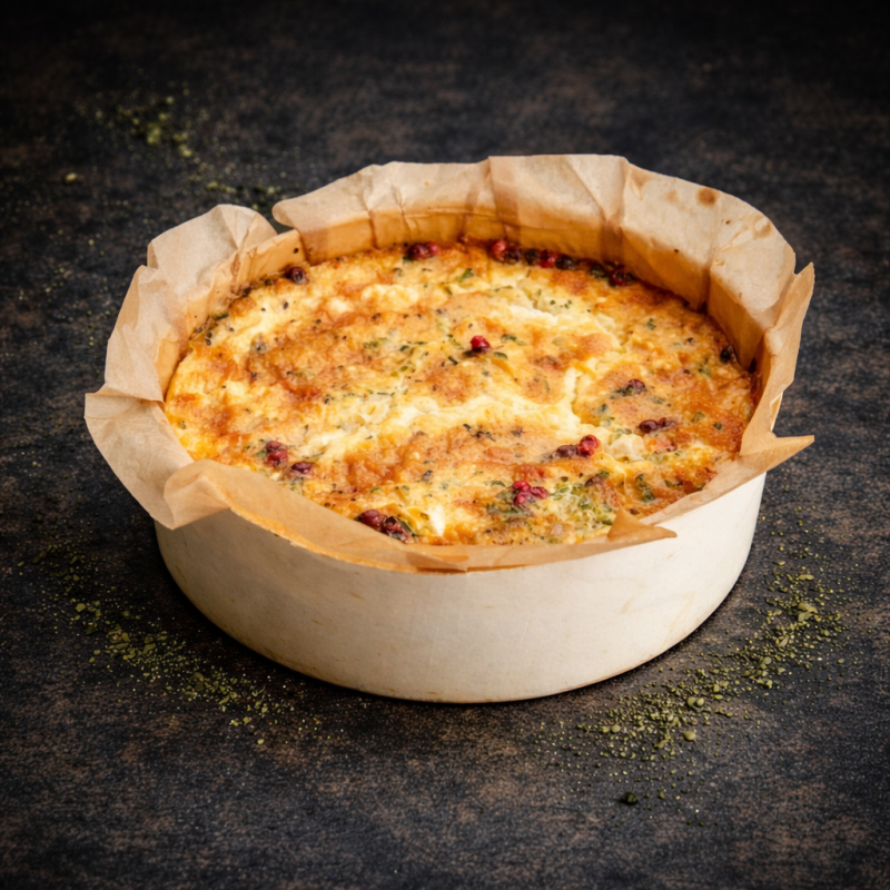 Heerlijke gamba taart, enkel in de oven en je kunt aan tafel. Onze gamba taart wordt in punten aangeboden.